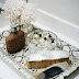 I love this romantic display of crystal and silver with the seashell studded frame in the background. It makes me want to recreate this vignette.